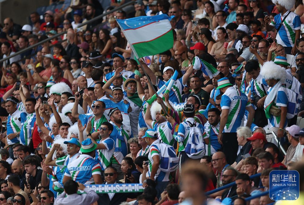 烏茲別克斯坦隊球迷在看臺加油助威。新華社記者 黃宗治 攝