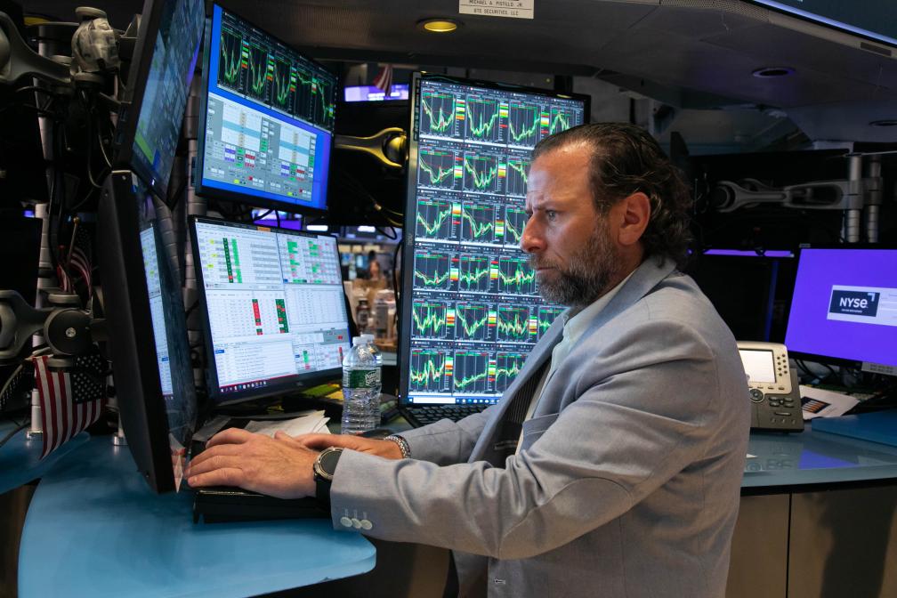 5月3日,交易員在美國(guó)紐約證券交易所交易大廳工作。新華社發(fā)(郭克攝)