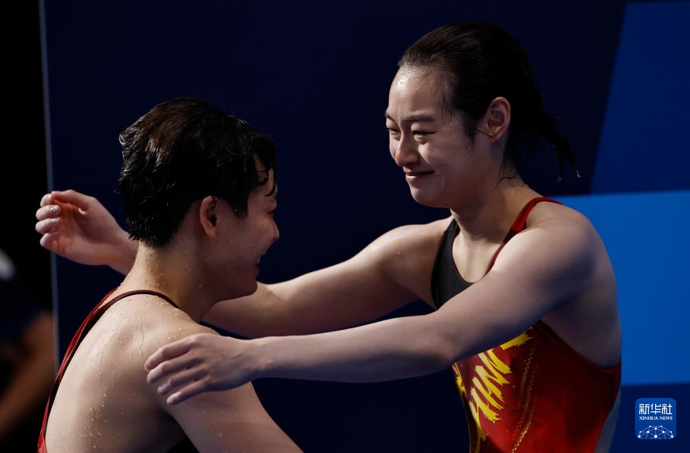 8月9日,中國選手陳藝文(右)在比賽后。新華社記者 王鵬 攝