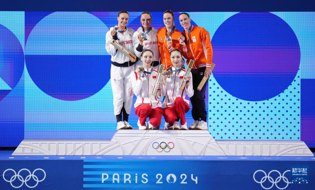 當日,巴黎奧運會花樣游泳雙人項目的最后一項比賽雙人自由自選在巴黎奧林匹克水上運動中心舉行。中國組合王柳懿/王芊懿奪得冠軍。