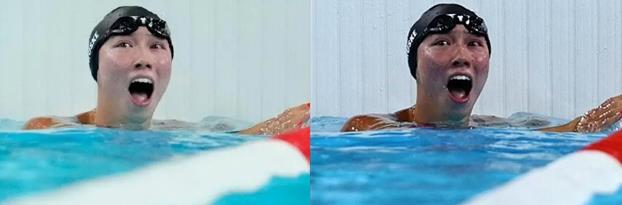 △左為美聯(lián)社調(diào)色圖片,右為路透社圖片