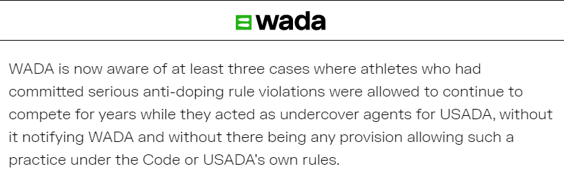 世界反興奮劑機(jī)構(gòu)前幾天披露,他們發(fā)現(xiàn)美國常年包庇至少3名嚴(yán)重違規(guī)“嗑藥”的運(yùn)動員,理由居然是把這些人發(fā)展成了“線人”。這些“線人”整個職業(yè)生涯都在正常參賽和拿獎,自己就是“奉命作弊”,還指望他們抓作弊嗎?