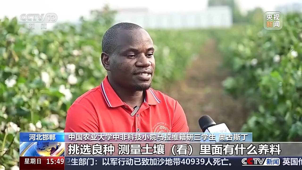 中國(guó)農(nóng)業(yè)大學(xué)中非科技小院馬拉維籍研一學(xué)生 馬達(dá):未來(lái)我也希望回國(guó)發(fā)展大農(nóng)場(chǎng),高效種植農(nóng)業(yè),保障國(guó)家糧食安全。馬拉維政府正鼓勵(lì)發(fā)展大農(nóng)場(chǎng),對(duì)我來(lái)說(shuō)是個(gè)巨大機(jī)會(huì)。中國(guó)是非洲很好的榜樣,我非常感恩能來(lái)中國(guó)。