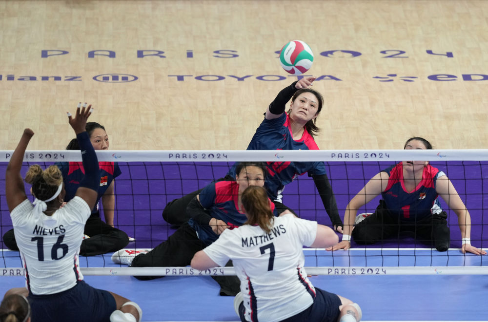 新華社巴黎9月7日電(記者馬思嘉、張薇)7日晚,遠(yuǎn)離市中心的北巴黎競(jìng)技場(chǎng)人潮涌動(dòng),中美女子坐式排球在殘奧會(huì)舞臺(tái)第六次打響激烈的金牌爭(zhēng)奪戰(zhàn),舉著五星紅旗和星條旗的觀眾也在為各自隊(duì)伍聲嘶力竭地吶喊。
