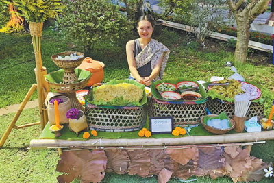 泰國楠府積極發(fā)展鄉(xiāng)村旅游。圖為當(dāng)?shù)孛癖娫谡故镜胤教厣〕浴?/p>