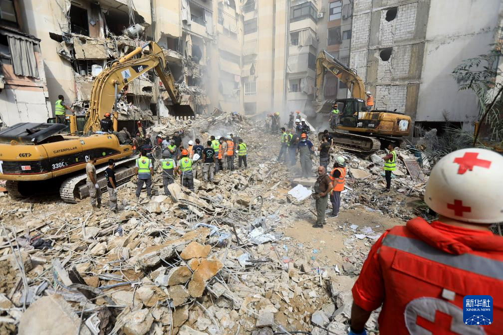 9月21日,救援人員在黎巴嫩貝魯特的襲擊現(xiàn)場工作。新華社發(fā)(比拉爾·賈維希攝)