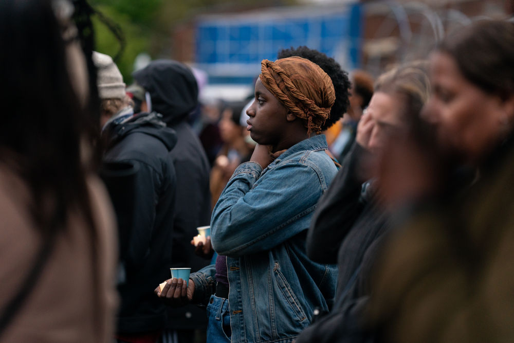 2022年5月25日,在美國明尼蘇達州明尼阿波利斯市,人們參加哀悼活動,紀念弗洛伊德遇害兩周年。2020年5月25日,“無法呼吸”的非洲裔男子喬治·弗洛伊德死于白人警察膝下,成為美國人權史上的恥辱一頁。新華社發(fā)(本·布魯爾攝)