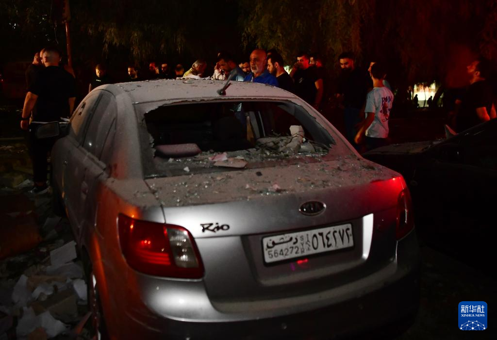 10月8日,在敘利亞首都大馬士革西部邁宰區(qū),一輛汽車在襲擊中受損。新華社發(fā)(阿馬爾·薩法爾賈拉尼攝)