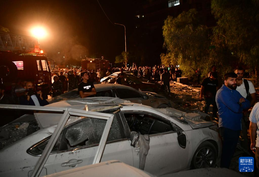 10月8日,在敘利亞首都大馬士革西部邁宰區(qū),人們聚集在遭襲居民樓前。新華社發(fā)(阿馬爾·薩法爾賈拉尼攝)