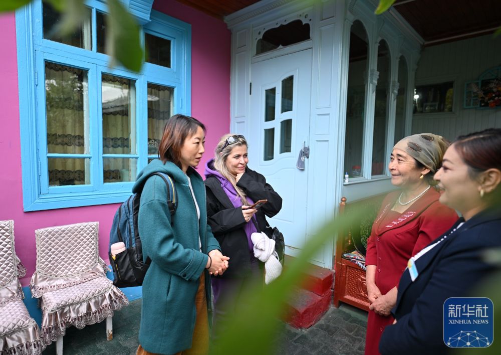 10月15日,與會嘉賓在伊寧市喀贊其民俗旅游區(qū)參訪。 新華社記者 李響 攝
