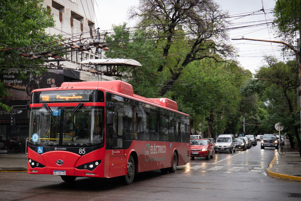 拜訪完酒莊,記者來到門多薩市區(qū)。這里,一些紅色公交車穿梭于林蔭道,車身上“百分之百電動”的標(biāo)語非常醒目。這是門多薩于2019年從比亞迪和中通客車購入的電動巴士。由此當(dāng)?shù)氐谝恢щ妱庸卉囮犝酵度脒\營。