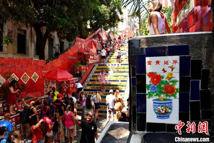 跟隨里約熱內(nèi)盧共和國(guó)博物館研究員安德烈·安迪·安古洛,中新社記者來(lái)到里約熱內(nèi)盧聞名遐邇的城市地標(biāo)——塞拉隆階梯。這是由智利藝術(shù)家塞拉隆歷時(shí)20余年打造的“彩色階梯”。