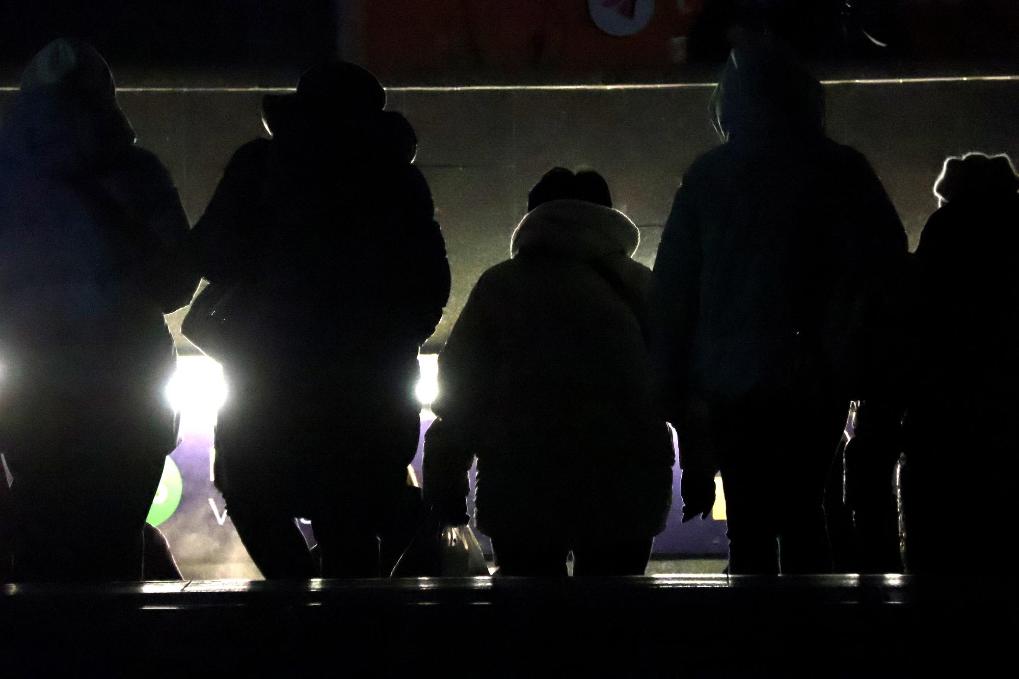 12月4日,在烏克蘭基輔,當?shù)鼐用襁M入一處地鐵站。新華社發(fā)(彼得·德魯克攝)