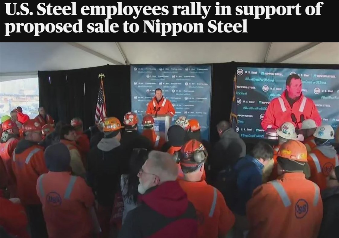 △美國哥倫比亞廣播公司網(wǎng)站:2024年12月12日,美鋼管理層和員工在位于賓夕法尼亞州的克萊頓工廠舉行集會,支持這樁收購交易。