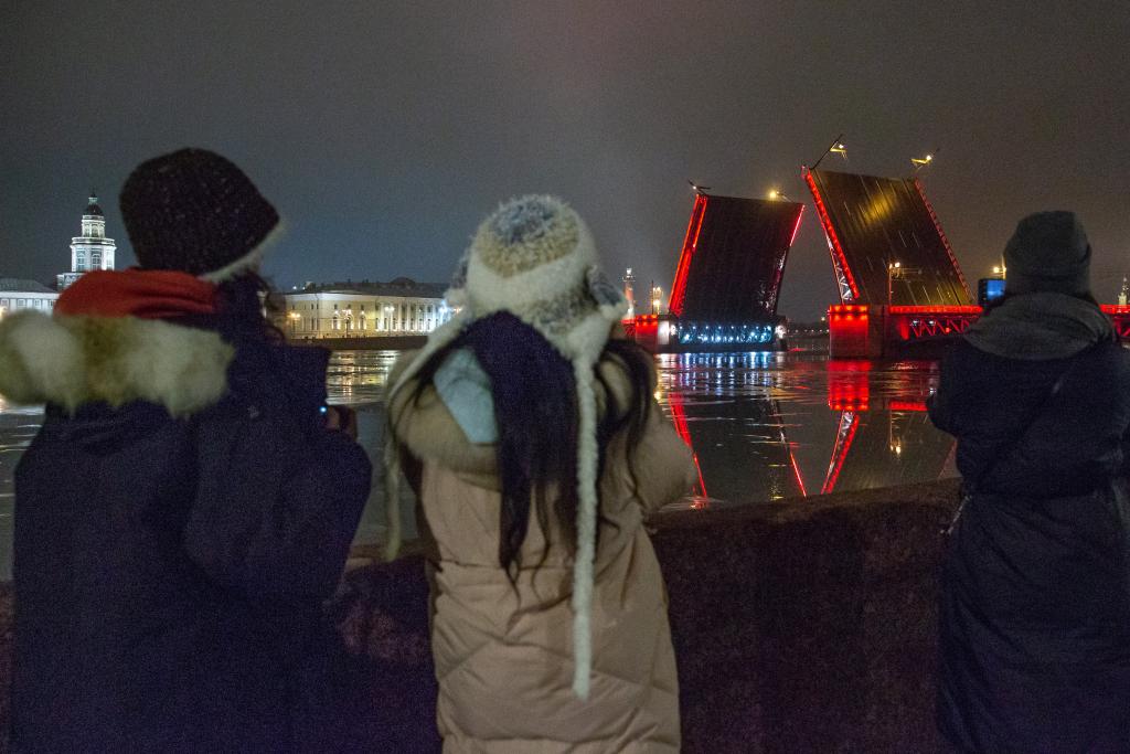 按照當?shù)貍鹘y(tǒng),涅瓦河上的多座橋梁只在每年4月至11月通航季定時開合,以便大型船只通航?!斑@是圣彼得堡首次為外國節(jié)日開橋,特別獻給我們的中國朋友。”圣彼得堡市對外關(guān)系委員會主席格里戈里耶夫說。