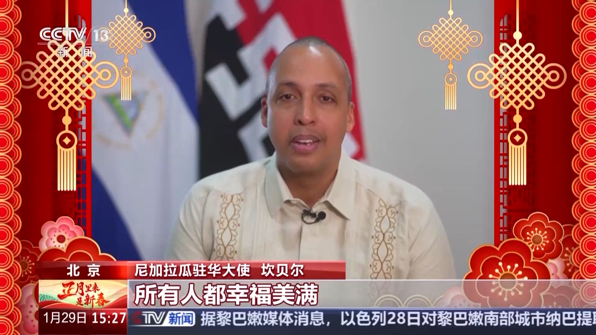 尼加拉瓜駐華大使 坎貝爾:今年將是我和家人第二次有機(jī)會(huì)在北京慶祝春節(jié)。這是一段美妙的經(jīng)歷。在北京和中國(guó)的其他城市,一切都會(huì)變得如此豐富多彩。
