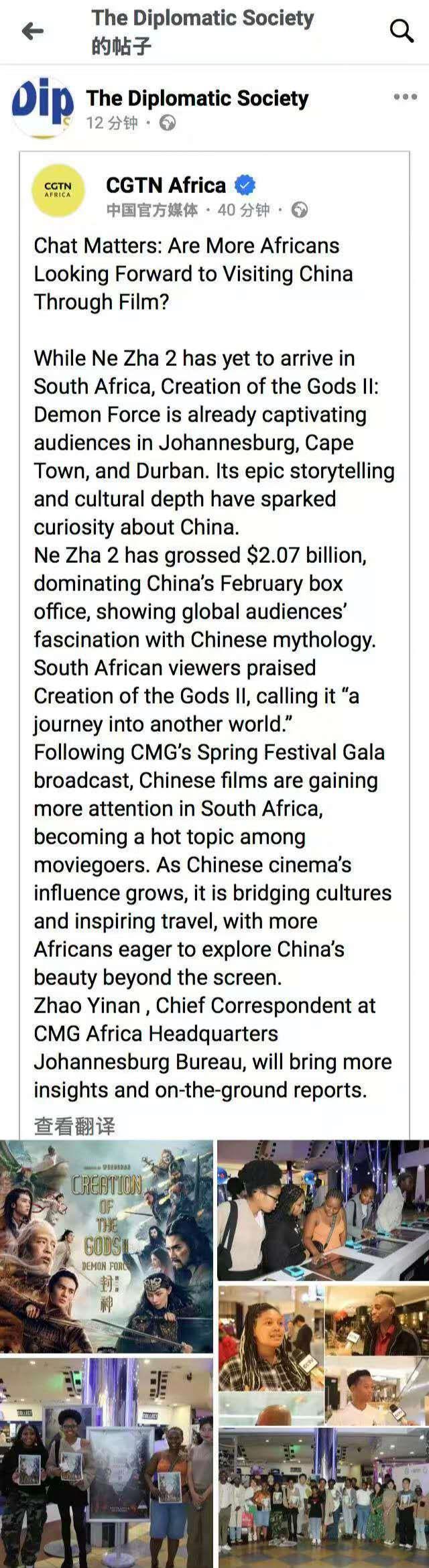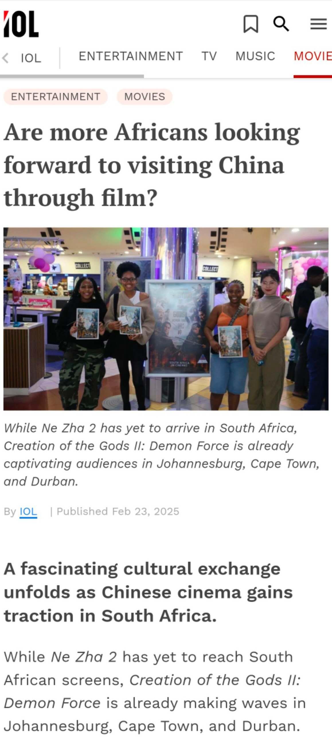 電影連接世界,這一次,非洲大陸期待著《哪吒2》的到來,曼德拉廣場上舞動著南非版的“魔童鬧海”——非洲時(shí)刻已到——This time for Africa!