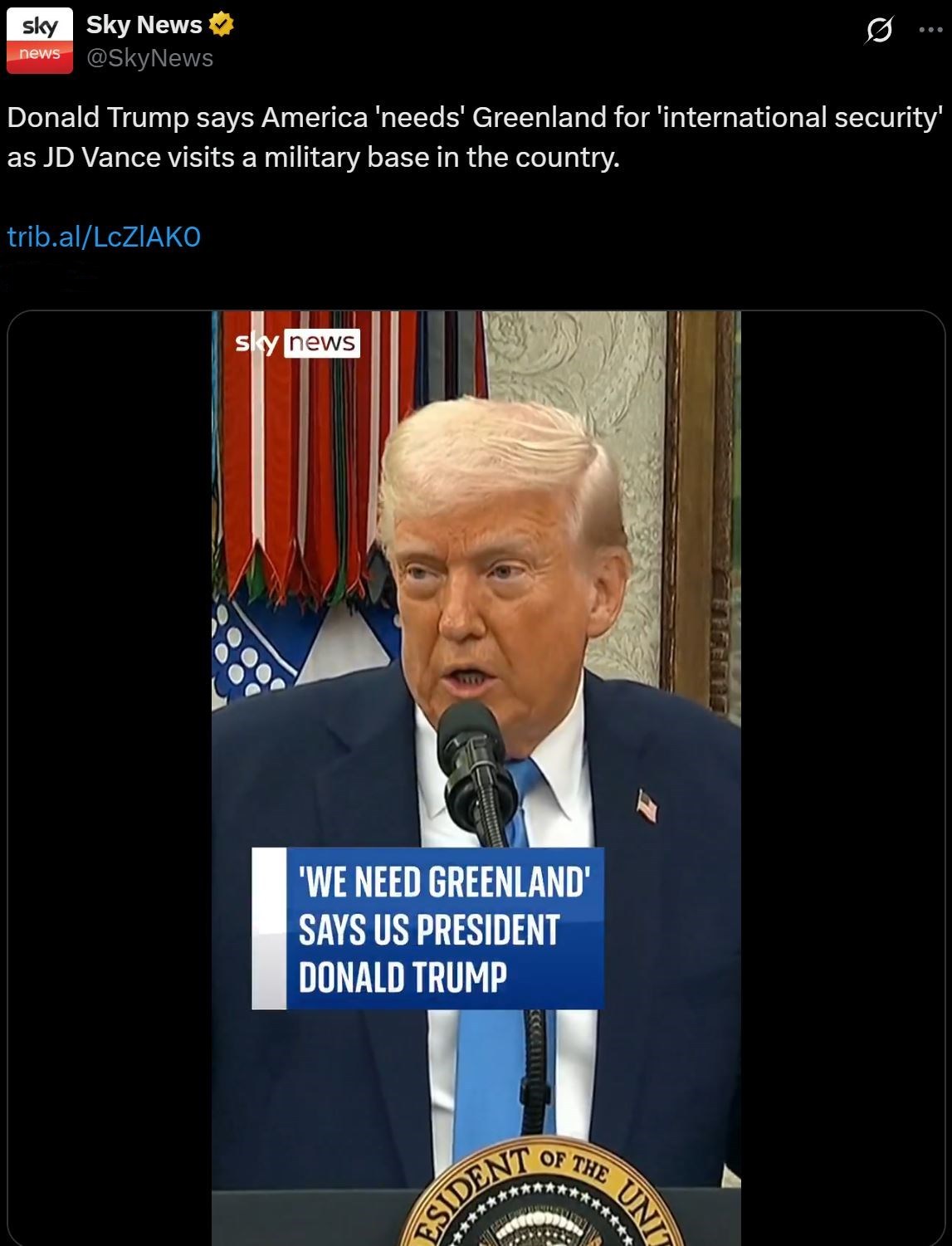 “格陵蘭島對于美國的安全至關(guān)重要,而它現(xiàn)在非常脆弱。如果格陵蘭島人民愿與美國合作,而且我也認(rèn)為他們最終會與美國合作,我們可以讓他們更安全?!?/p>
