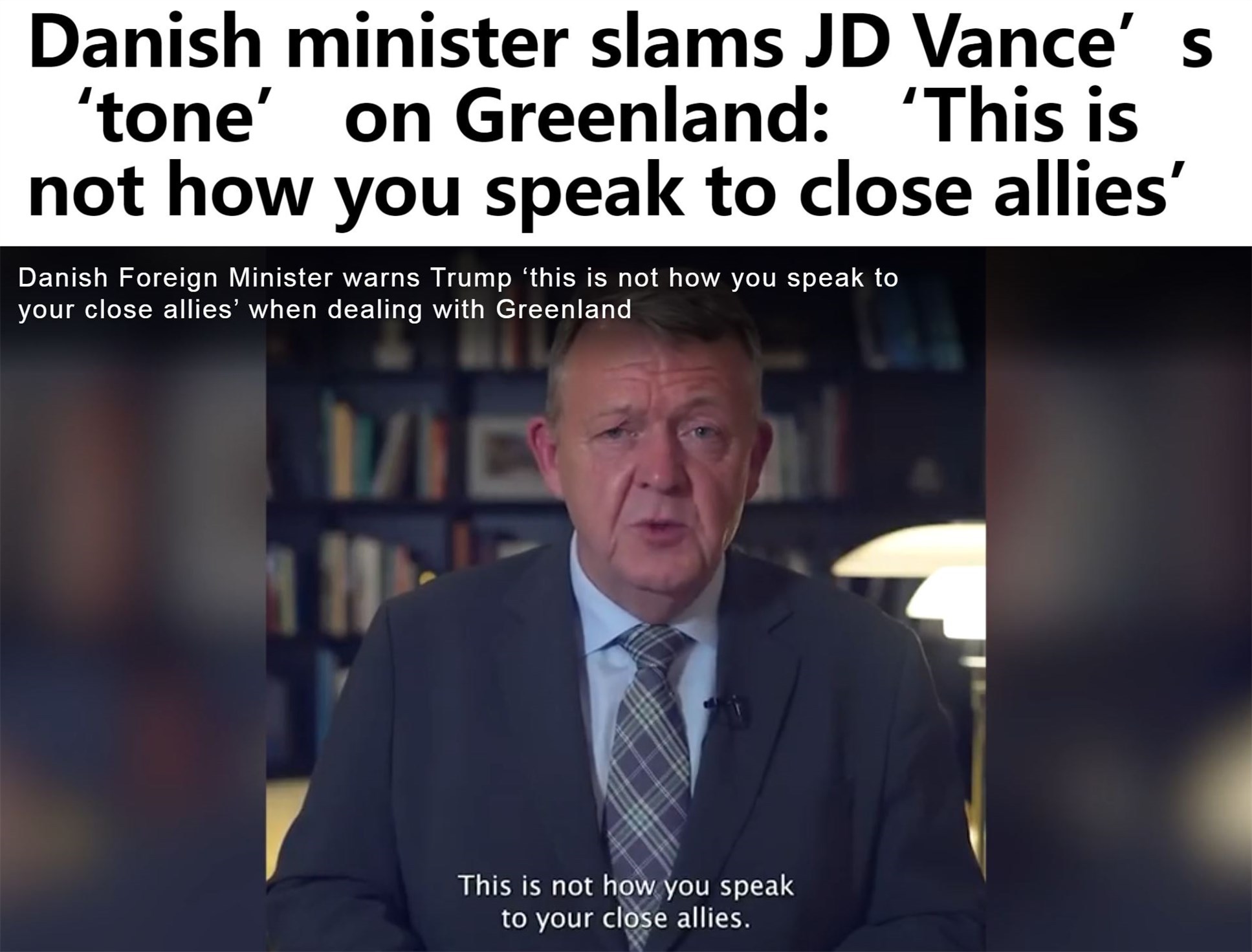 丹麥外交大臣拉斯穆森29日在社交媒體上發(fā)表視頻講話,批評萬斯有關(guān)格陵蘭島表態(tài)的“調(diào)調(diào)”。