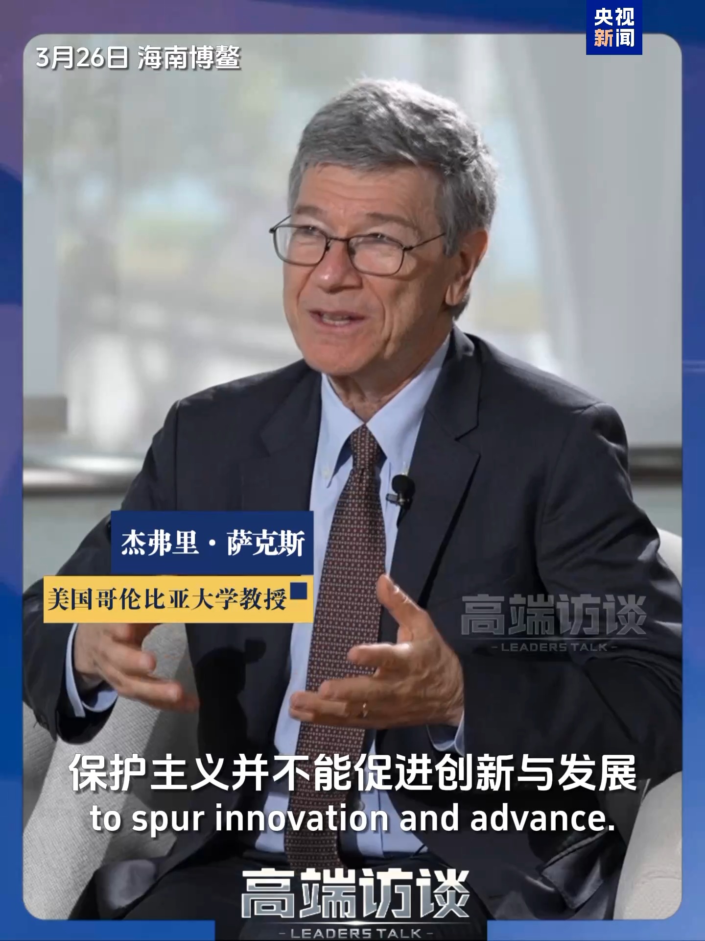 美國(guó)哥倫比亞大學(xué)教授杰弗里·薩克斯日前在接受《高端訪談》專訪時(shí)表示,美國(guó)的保護(hù)主義政策無(wú)助于美國(guó)企業(yè)提升國(guó)際競(jìng)爭(zhēng)力。