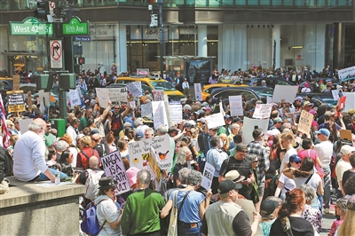 美方濫施關稅措施招致美國國內越來越多的反對聲音,擔憂情緒在民眾中不斷蔓延。美國哥倫比亞廣播公司與輿觀調查公司的一項最新民調結果顯示,58%的受訪美國民眾表示反對美國關稅政策,53%的受訪者認為美國國會應該阻止或限制新關稅,58%的受訪者認為關稅政策導致食品雜貨價格上漲。4月19日,美國多地舉行抗議活動,首都華盛頓、紐約、舊金山、波士頓等城市的民眾走上街頭,抗議現(xiàn)政府加征關稅、大規(guī)模裁員、驅逐移民等政策。