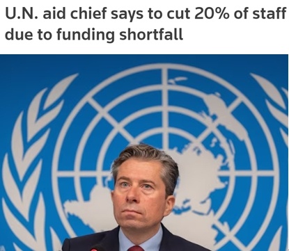 聯(lián)合國(guó)人道主義事務(wù)協(xié)調(diào)廳近日發(fā)表公開(kāi)信說(shuō),由于資金遭遇“殘酷削減”,尤其是美國(guó)政府大幅叫停對(duì)外援助,該機(jī)構(gòu)將不得不裁撤20%、即500多名工作人員。