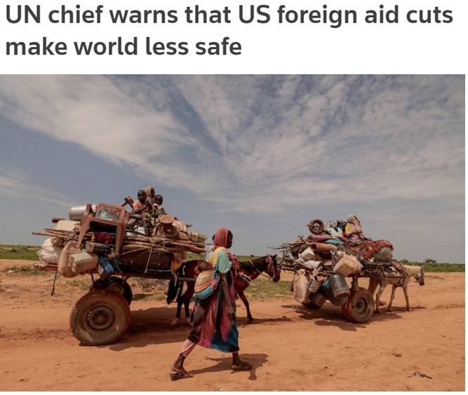 聯(lián)合國(guó)秘書(shū)長(zhǎng)古特雷斯此前曾表示,美國(guó)大幅削減對(duì)外援助無(wú)異于一場(chǎng)人為制造的“人道主義地震”,將對(duì)世界上最弱勢(shì)群體造成嚴(yán)重傷害,不僅讓世界更不健康、更不安全,也有損美國(guó)自身利益。
