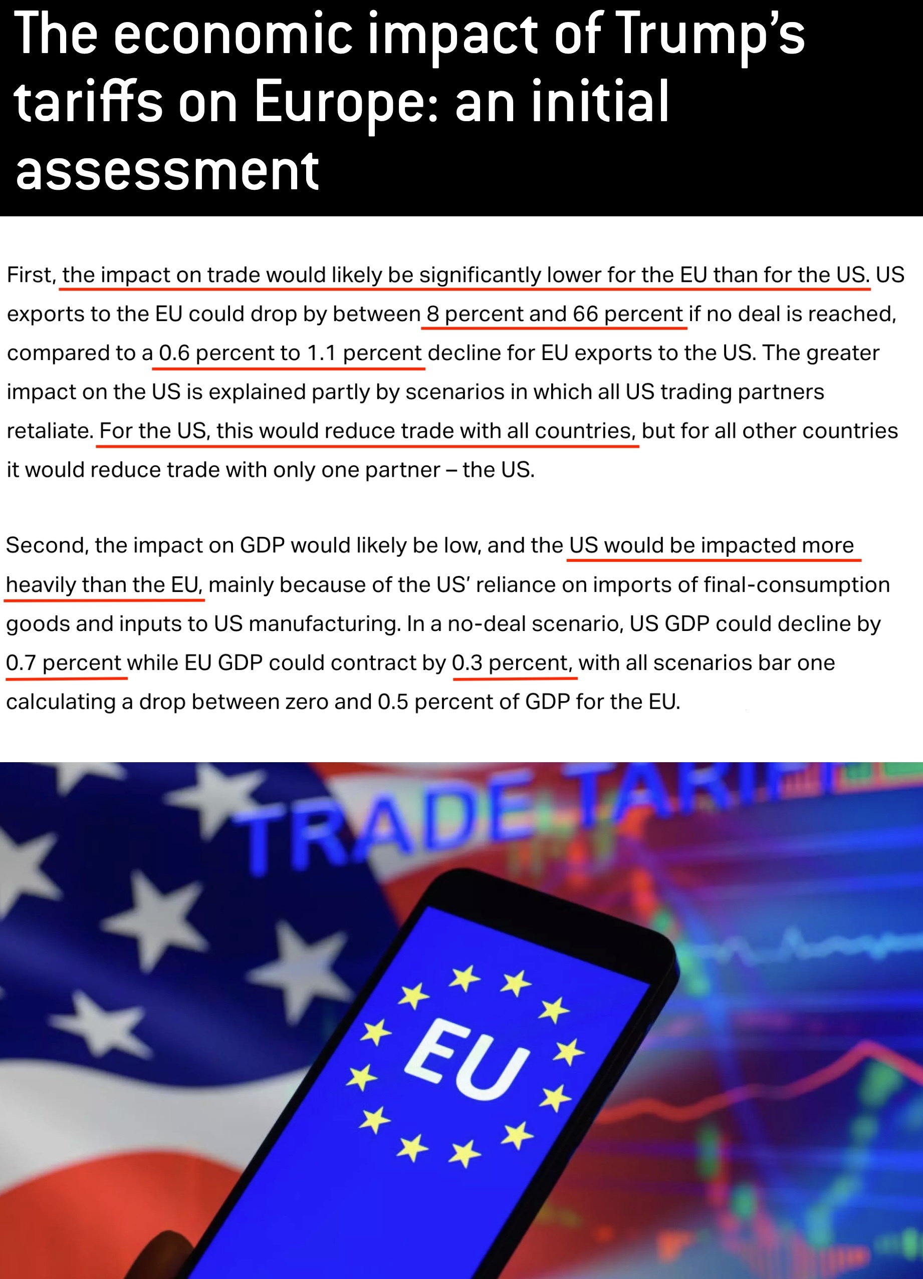 至于關(guān)稅對(duì)國內(nèi)生產(chǎn)總值(GDP)的影響,美國也將比歐盟更嚴(yán)重。如果不能與歐盟達(dá)成關(guān)稅協(xié)議,美國的GDP可能下降0.7%,而歐盟的GDP則可能僅下降0.3%。