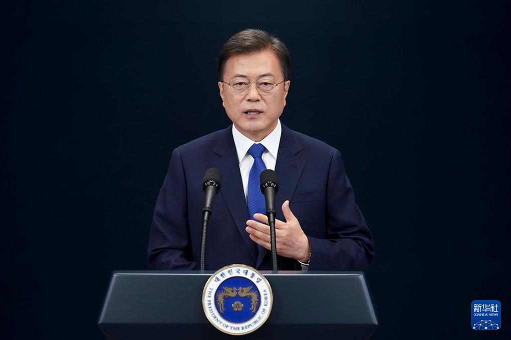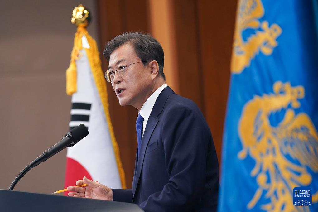 據韓聯社4月24日報道,韓國前總統文在寅因涉嫌受賄被檢方提起訴訟。這張拍攝于2020年5月10日的資料照片顯示,時任韓國總統文在寅在韓國首爾青瓦臺發(fā)表講話。新華社發(fā)(青瓦臺供圖)