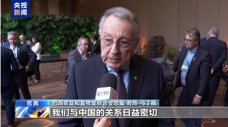 巴西農(nóng)業(yè)和畜牧業(yè)聯(lián)合會總裁 若昂·馬丁斯:我們與中國的關(guān)系日益密切,我們期望中國繼續(xù)成為巴西農(nóng)業(yè)非常重要的合作伙伴。
