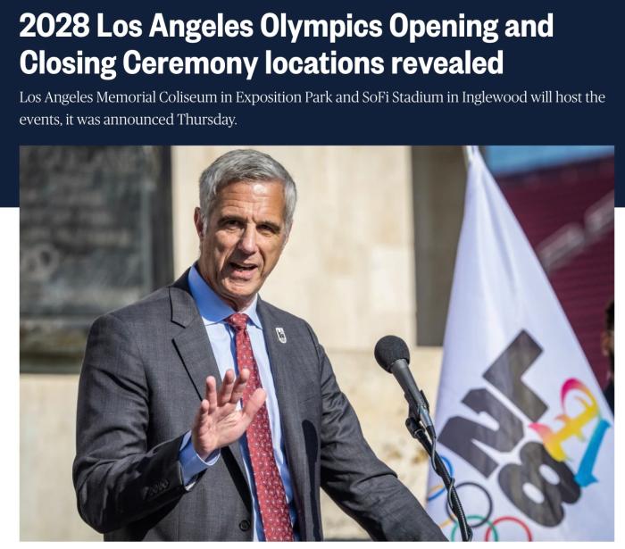 報道還提到,洛杉磯紀(jì)念體育場曾于1932年和1984年舉辦過奧運會。