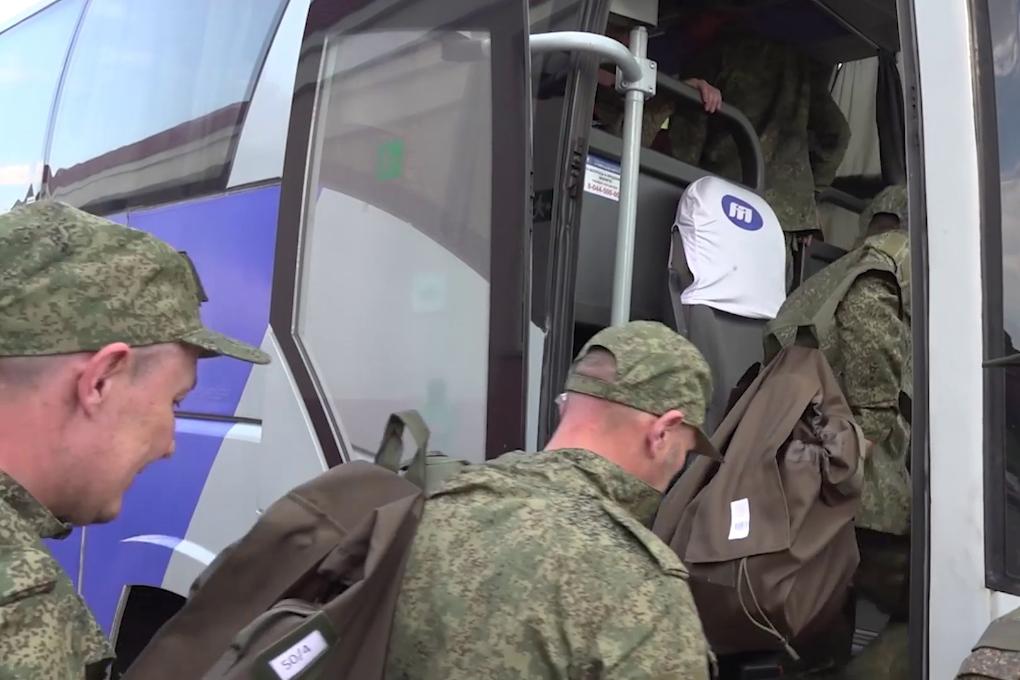 這張俄羅斯國防部5月23日發(fā)布的視頻截圖顯示,被釋放的俄方人員登上大巴車。新華社/塔斯社