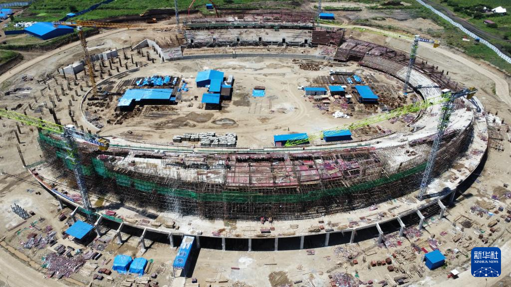 這是坦桑尼亞北部城市阿魯沙的一片繁忙工地:六座高聳的塔吊伸展著鋼鐵巨臂,在高空精準(zhǔn)吊運(yùn)建材;焊接聲、機(jī)械轟鳴聲與指令聲此起彼伏,交織成一首建設(shè)交響曲;上千名工人頭戴安全帽、身著反光背心,正全力拉滿施工“進(jìn)度條”……一座現(xiàn)代化體育場(chǎng)已初具雛形。