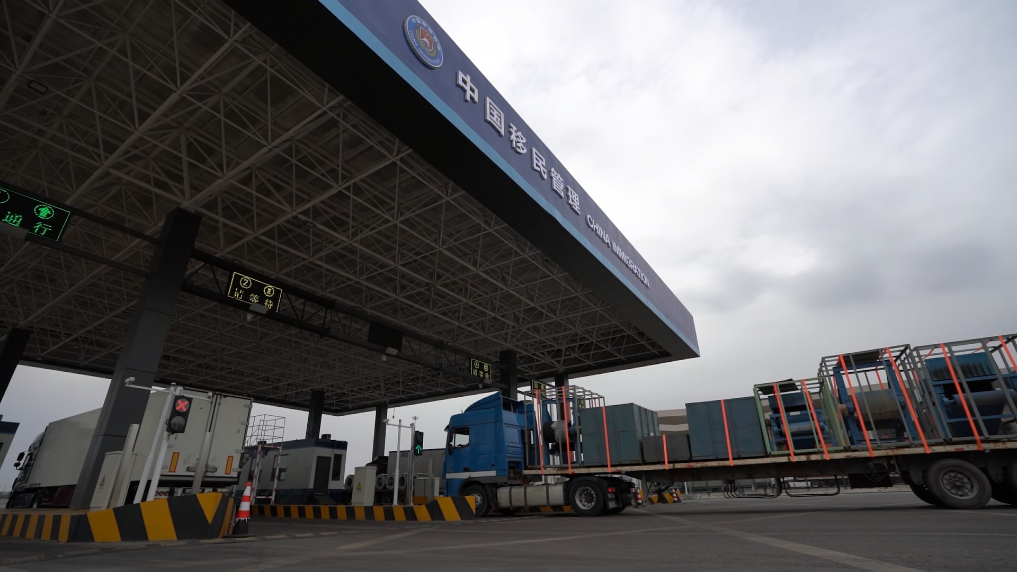 在霍爾果斯公路口岸,貨車、商品車、工程車等排成長(zhǎng)龍,從中國(guó)駛向哈薩克斯坦。