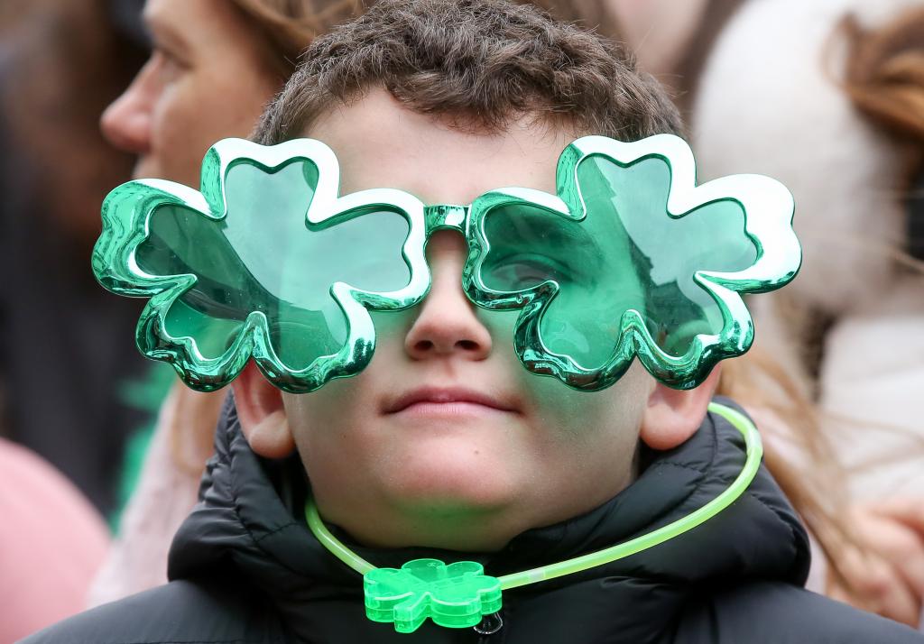 2024年3月17日,一名兒童在英國(guó)倫敦參加圣帕特里克節(jié)游行。新華社發(fā)