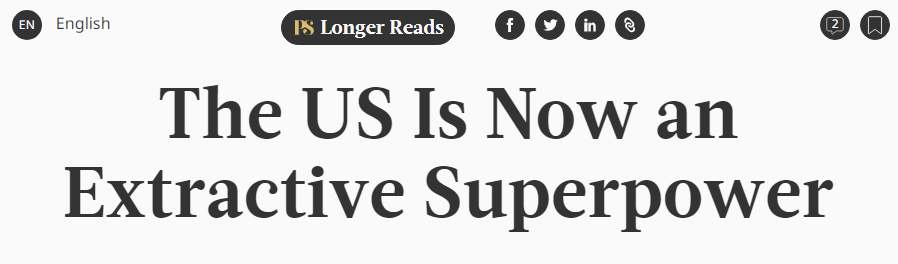 近日,世界報業(yè)辛迪加網站刊登一篇文章,標題是《美國已經成為一個榨取型的超級大國》。