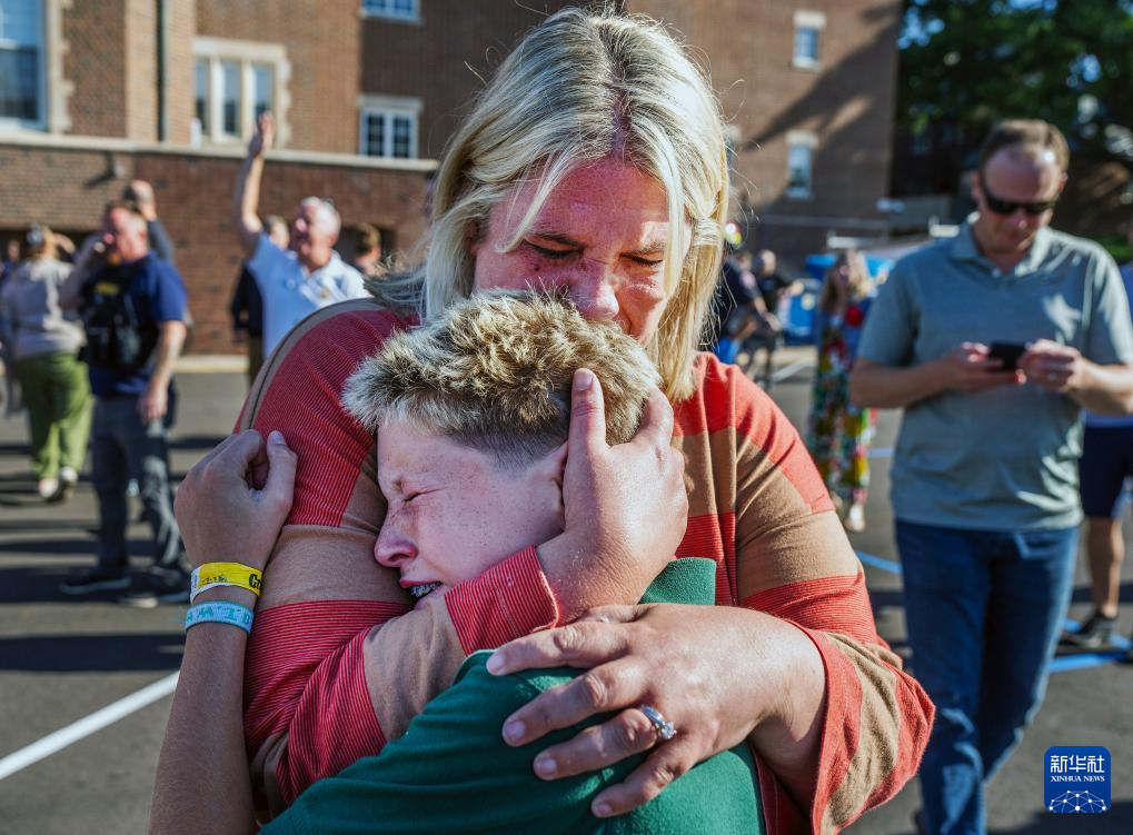 8月27日,在美國明尼蘇達州明尼阿波利斯市南部一所學校,一名母親安慰自己的孩子。新華社/美聯(lián)