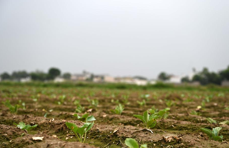 巴基斯坦旁遮普省的阿托克區(qū)土地里正在生長的中國花椰菜幼苗。(圖片來源:新華社)