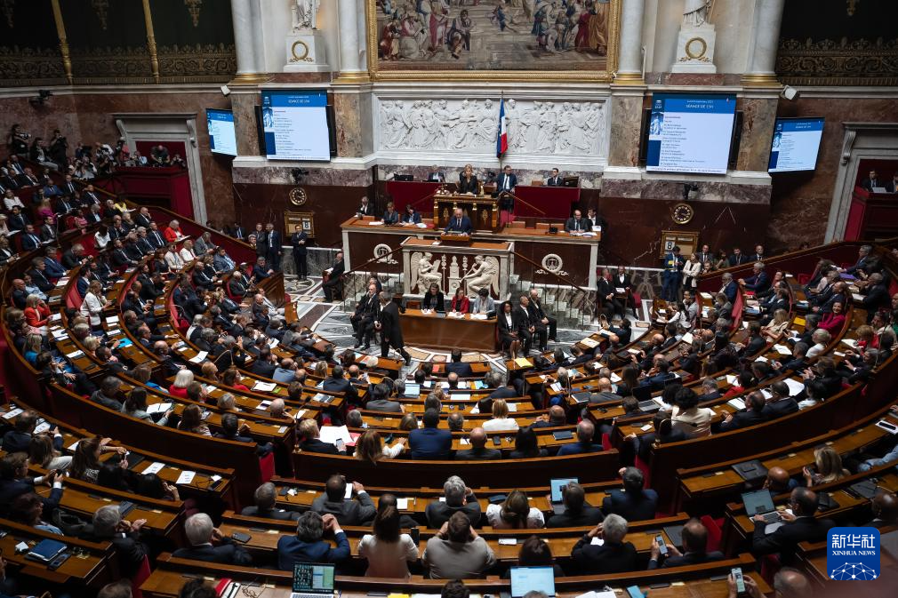 9月8日,法國總理貝魯在位于巴黎的國民議會(huì)內(nèi)發(fā)表演講。新華社發(fā)(奧雷利安·莫里薩爾攝)