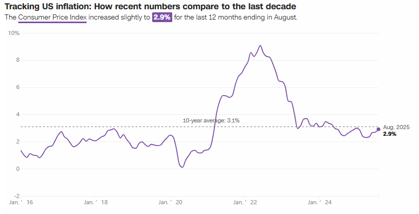 美國勞工統(tǒng)計(jì)局最新數(shù)據(jù)顯示,2025年8月消費(fèi)者價(jià)格指數(shù)(CPI)環(huán)比上漲0.4%,年通脹率攀升至2.9%,不僅創(chuàng)下今年1月以來的最高水平,而且增速超過7月的2.7%。