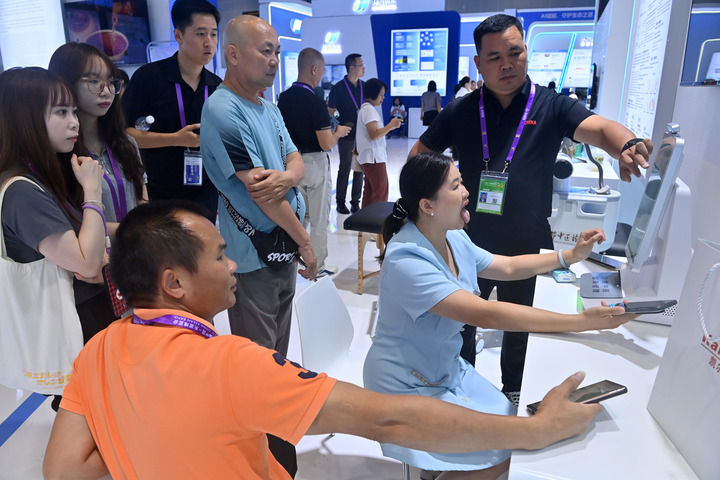 2025年9月19日,在廣西南寧國際會展中心,參觀者在體驗人工智能看病。新華社記者 陸波岸 攝