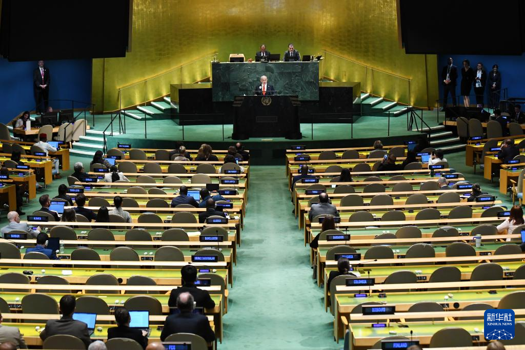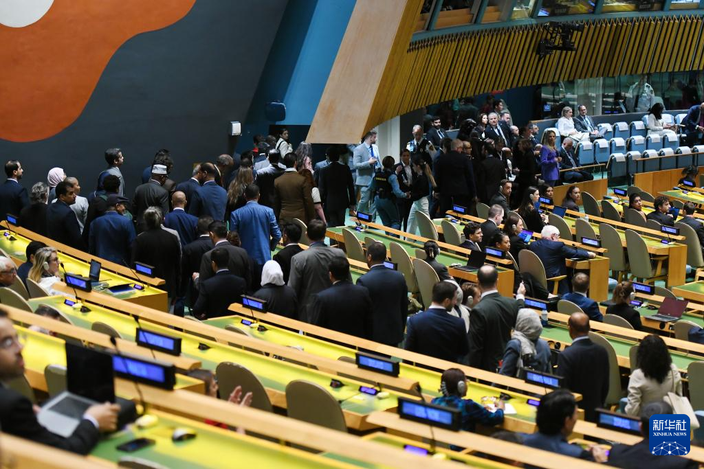當(dāng)日,以色列總理內(nèi)塔尼亞胡在第80屆聯(lián)合國大會一般性辯論發(fā)言。眾多聯(lián)合國會員國代表起身離席,退場抗議。新華社記者吳曉凌攝