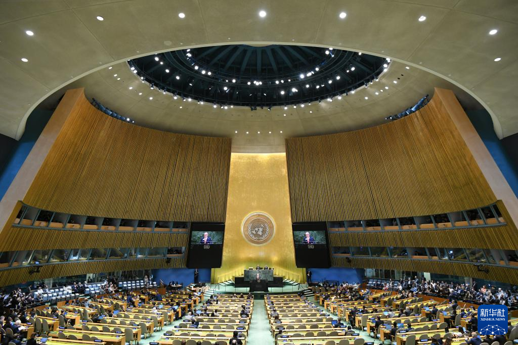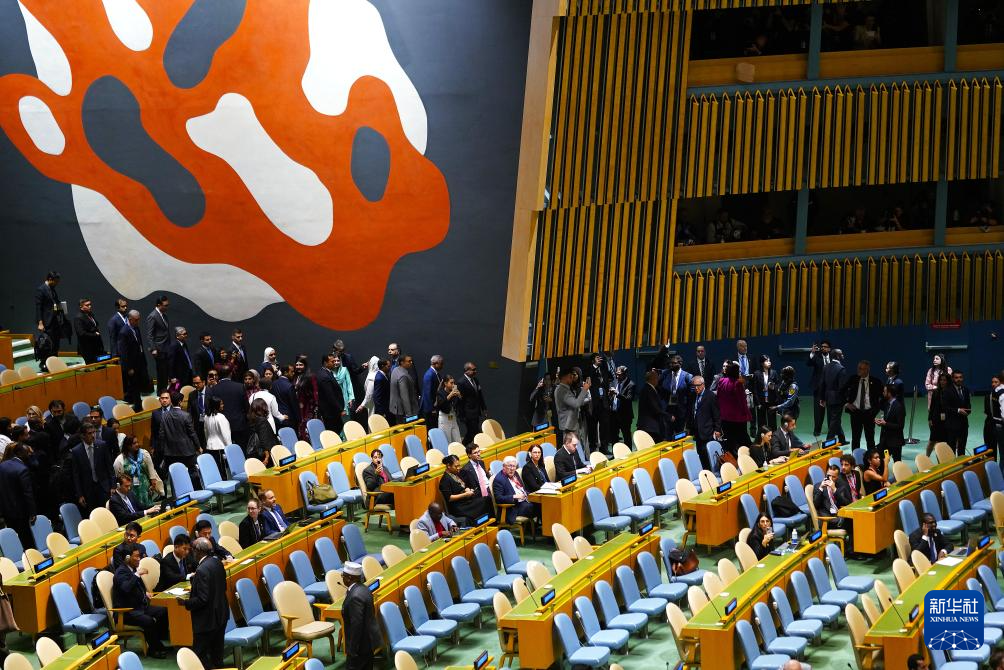 9月26日,在位于紐約的聯(lián)合國總部,眾多代表退場抗議。新華社記者李睿攝