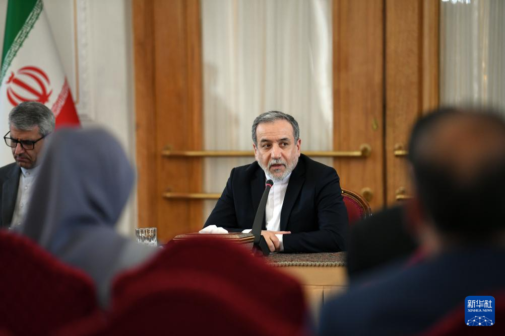 10月5日,在伊朗首都德黑蘭,伊朗外交部長阿拉格齊(右)對(duì)多國駐伊朗外交人員發(fā)表講話。新華社記者 沙達(dá)提 攝
