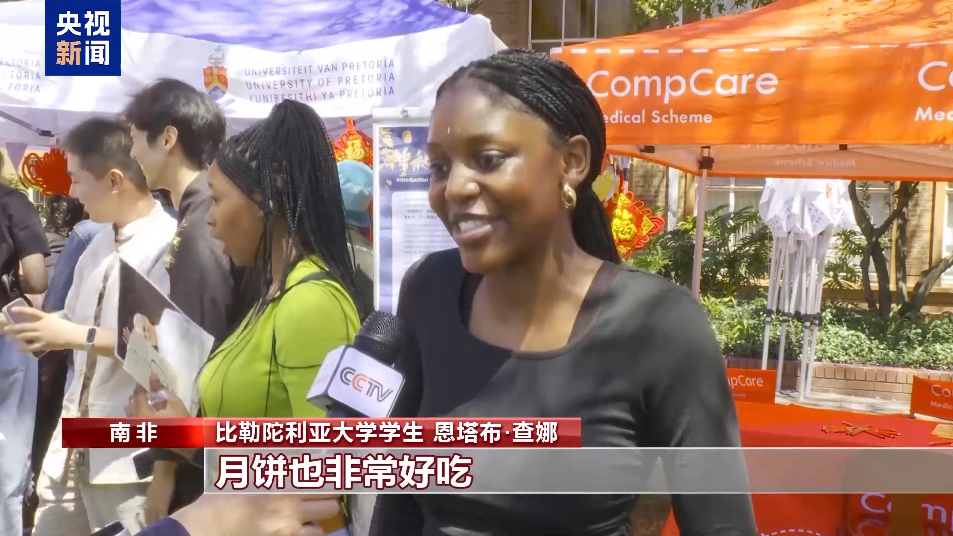 南非比勒陀利亞大學學生 恩塔布·查娜:中秋節(jié)讓我覺得很溫馨,這是我第一次看到中國人穿漢服。我品嘗了中國茶,一切都很棒,月餅也非常好吃。