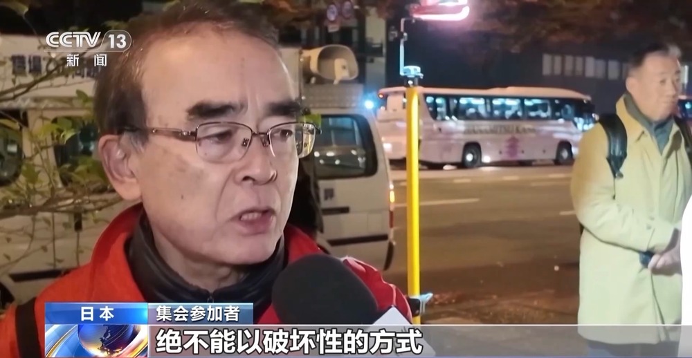 集會(huì)參加者:我當(dāng)然認(rèn)為高市應(yīng)該撤回錯(cuò)誤言論,對(duì)于國民來說,這絕對(duì)是不應(yīng)該出現(xiàn)的首相發(fā)言,我認(rèn)為這是違反憲法的。
