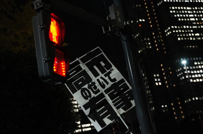 11月21日,在日本東京的首相官邸外,民眾舉起標(biāo)語(yǔ)參加抗議活動(dòng)。新華社記者 賈浩成 攝