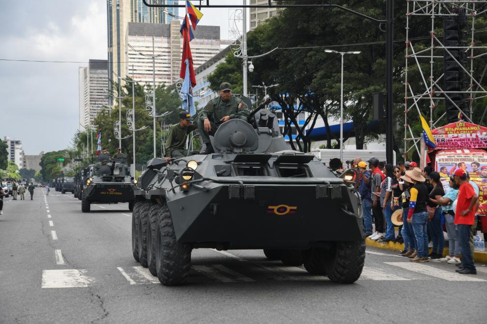 9月23日,在委內(nèi)瑞拉首都加拉加斯,參加游行的裝甲車(chē)輛列隊(duì)行進(jìn)。當(dāng)天,加拉加斯舉行大規(guī)模游行,呼吁保衛(wèi)委內(nèi)瑞拉主權(quán)與和平,反對(duì)美國(guó)在加勒比海域的軍事威脅。新華社發(fā)(馬科斯·薩爾加多攝)