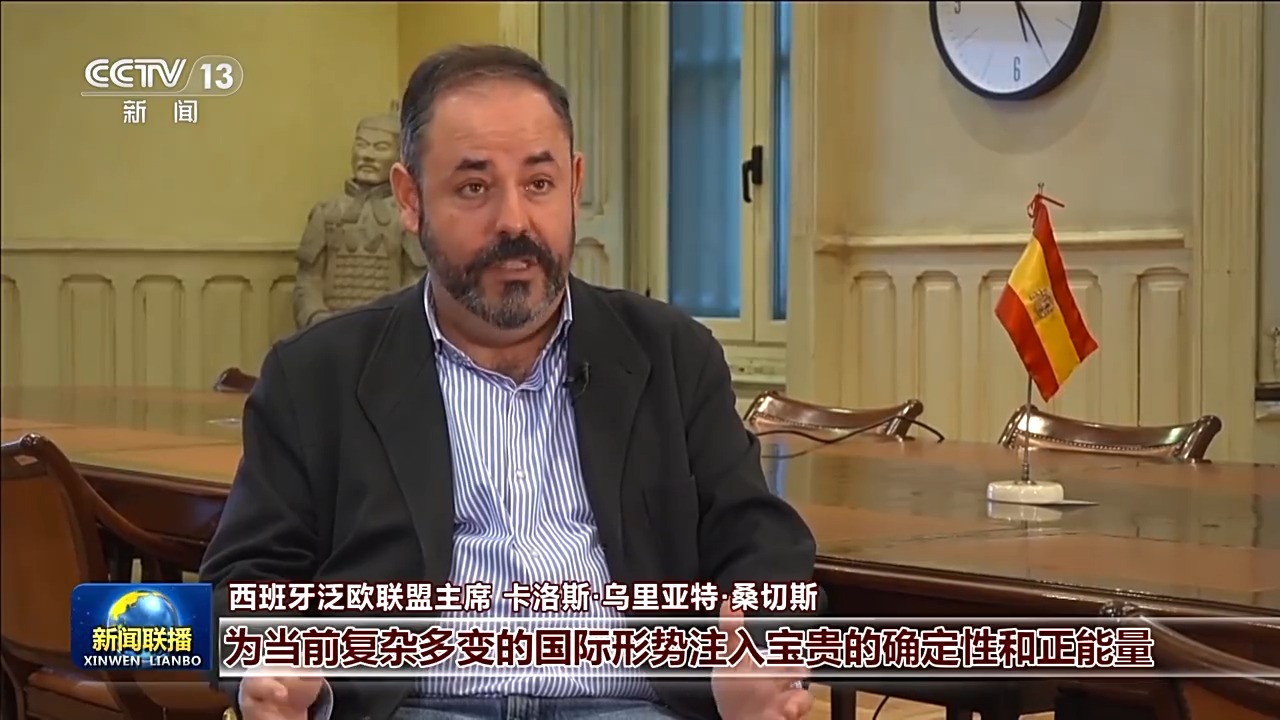 西班牙泛歐聯(lián)盟主席 卡洛斯·烏里亞特·桑切斯:習(xí)近平主席發(fā)表的新年賀詞為當(dāng)前復(fù)雜多變的國(guó)際形勢(shì)注入寶貴的確定性和正能量,習(xí)主席提出的一系列全球倡議立足于造福全人類。中國(guó)還積極應(yīng)對(duì)氣候變化,在可持續(xù)發(fā)展方面為世界提供了重要借鑒。中國(guó)堅(jiān)持合作共贏的理念,讓中國(guó)的發(fā)展成果惠及更多國(guó)家和人民。