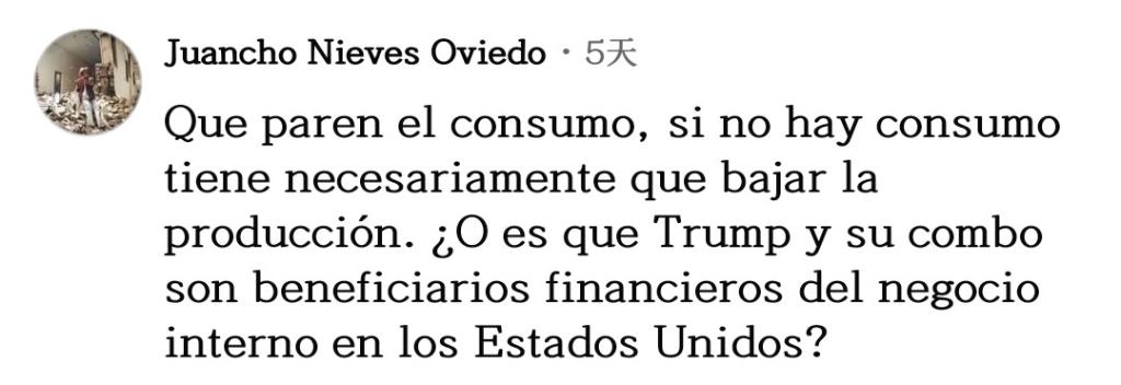 網(wǎng)友胡安喬·奧維多一針見(jiàn)血:“停止(毒品)消費(fèi)吧,如果沒(méi)人消費(fèi),生產(chǎn)必然下降。莫非特朗普和他的團(tuán)隊(duì)是美國(guó)國(guó)內(nèi)毒品生意的受益者?”